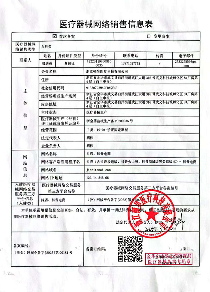 Copyright:浙江頓昊醫療有限公司      浙ICP備2021002977號      浙公網安備33072302100406號       浙網藥信備字〔2025〕00031 號            技術支持:跨海網絡 網站地圖 xml地圖
